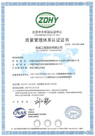 ISO quality management system certificate